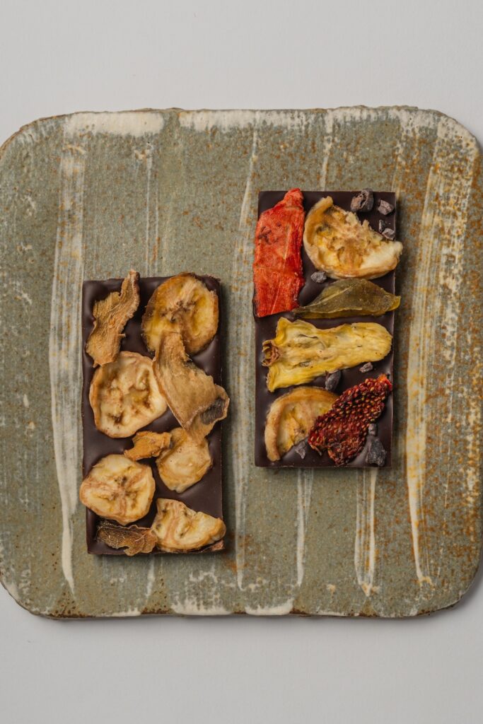 そのフラッグシップは、沖縄産カカオのBean to barとなりますが、当店らしさを表現した商品を生み出そうと、沖縄の素材を味わうドライフルーツをたっぷりと使ったものを目指しました。